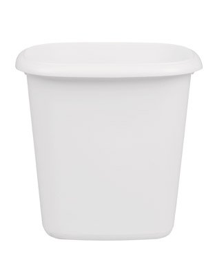 6 QT White Plastic Vanity Wastebasket, 10" x 7-1/4" x 10".