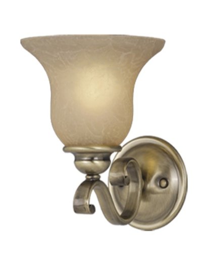 Vaxcel Monrovia Vanity VL35401A/CFinish: Antique BrassGlass: Cognac Crackle GlassHeight: 9Width: 7Depth: 9Weight: 12.56Bulb Qty: 1Watts: 100 WATTBulb Type: MEDIUM BASE